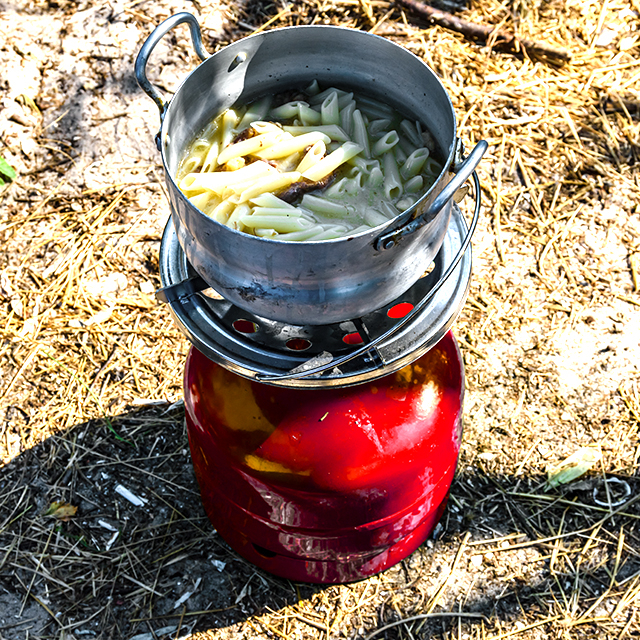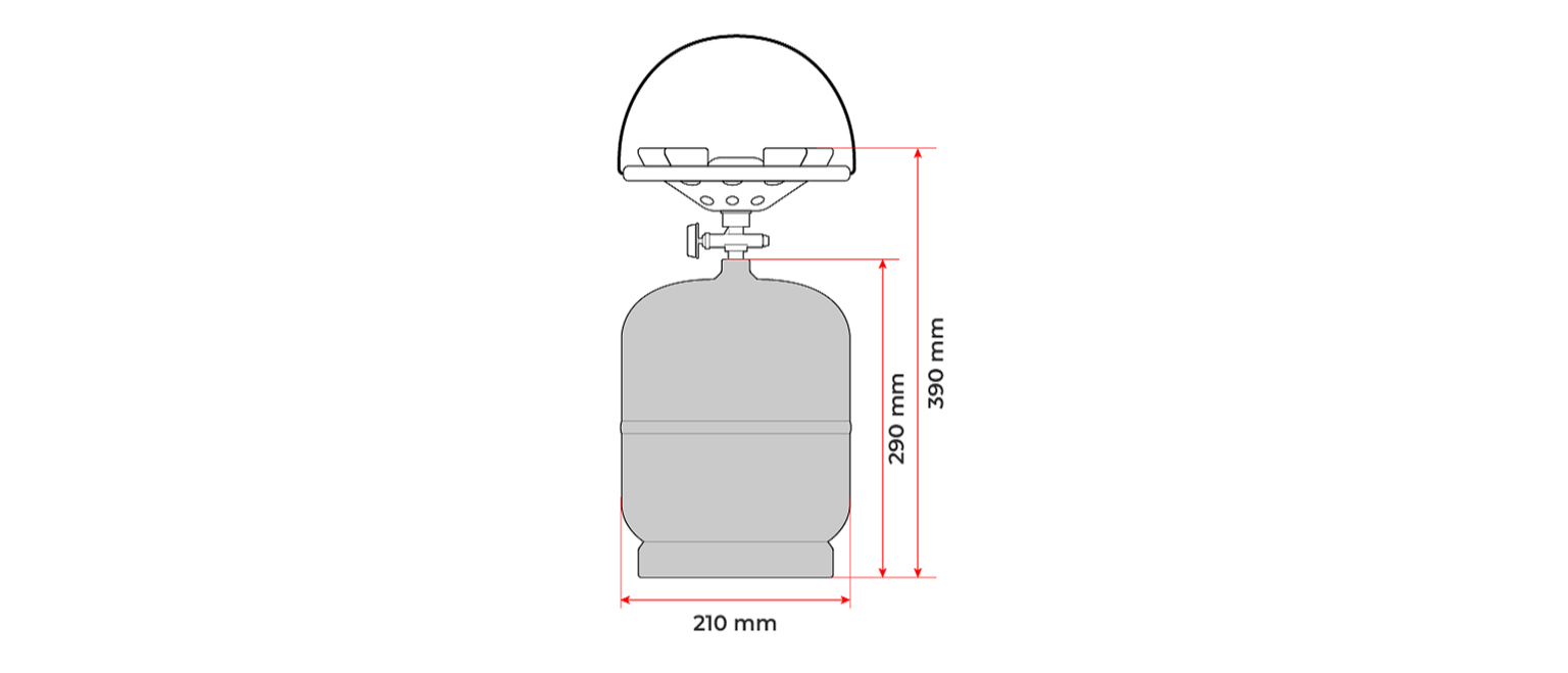 Цей балон з пальником відмінно підходить для приготування їжі у великих обсягах, завдяки великій, стійкій конфорці, діаметром 220 мм. Широке полум'я регулюється, а сам процес приготування відбувається так само швидко, як і на звичайній газовій плиті. Каструлі та казанки надійно розміщуються на міцній металевій підставці та не перевертаються під час приготування їжі.